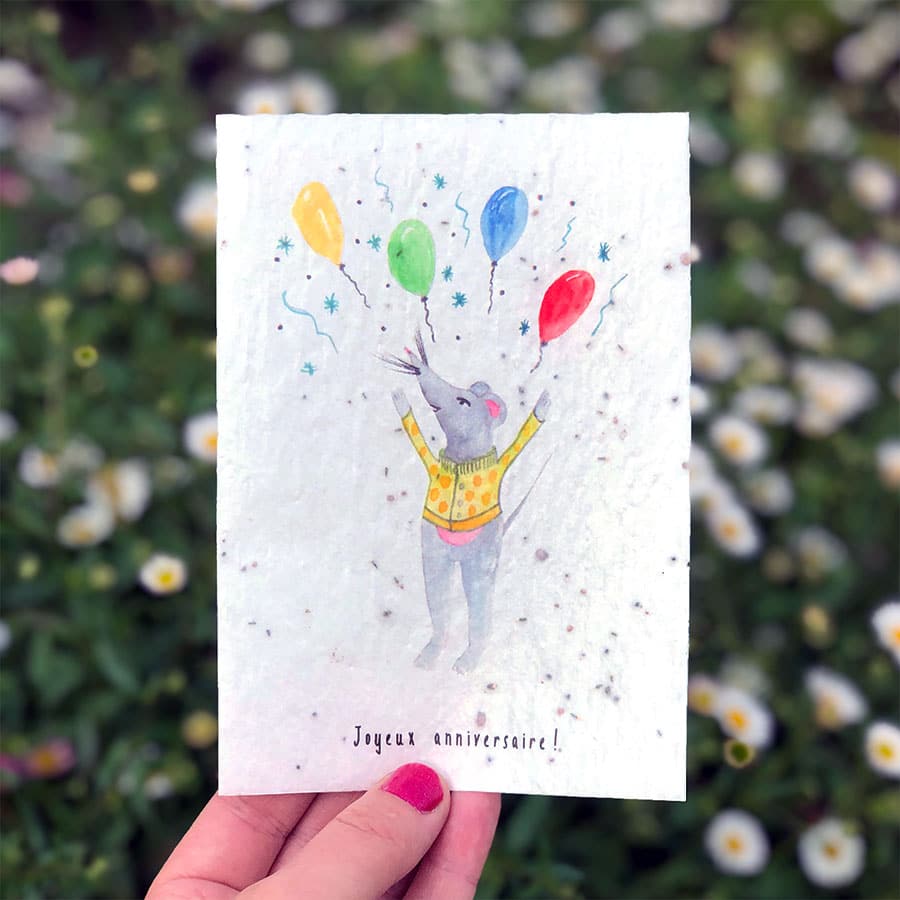 Souris c’est ta fête ! Une carte à planter pour souhaiter en douceur et en fleurs un joyeux anniversaire.